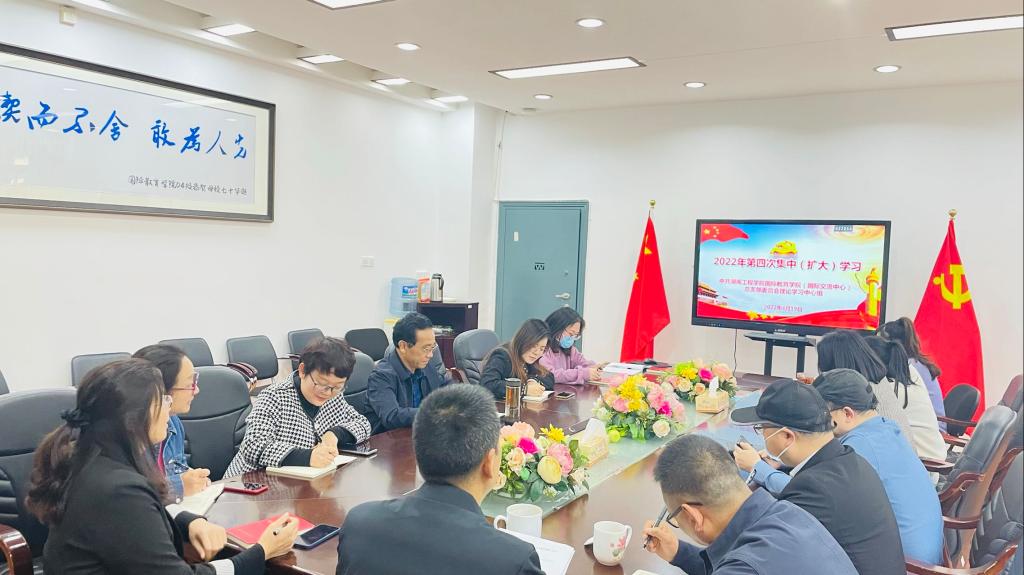 (国际交流中心)党总支理论学习中心组在E-105召开第四次集中(扩大)会议,开展国家安全教育,全体教职工参加会议。