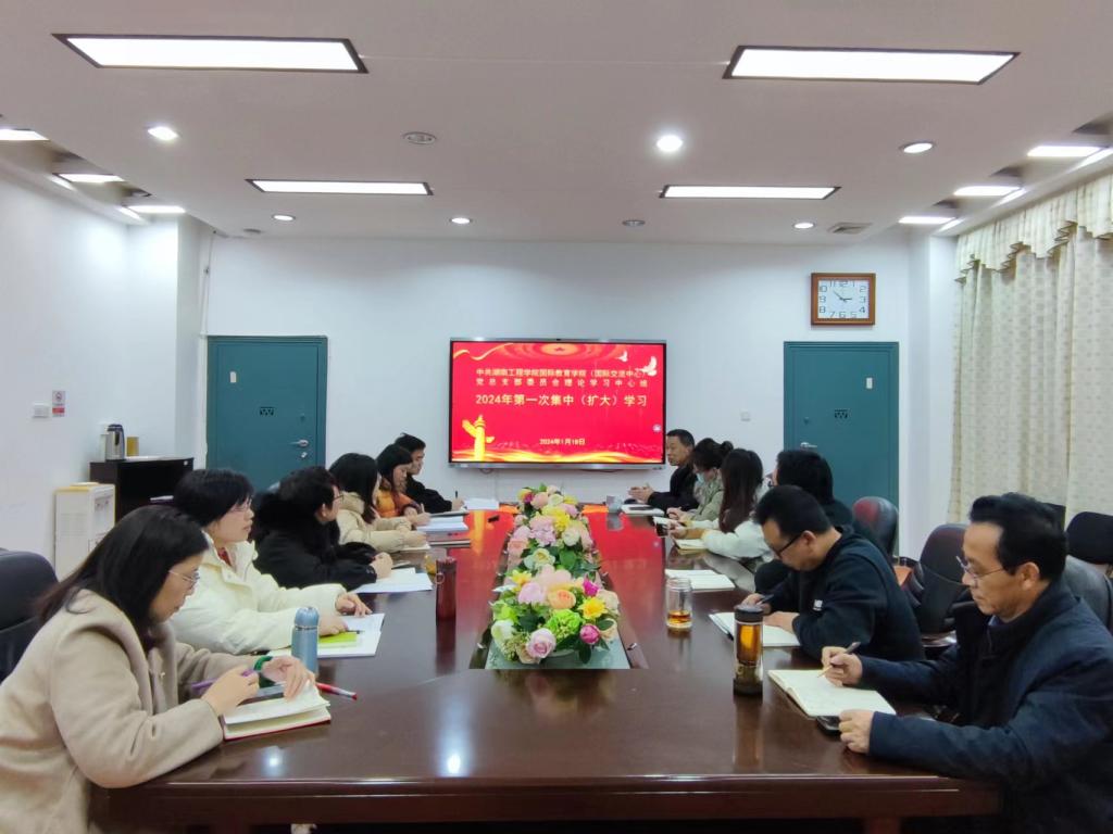 (国际交流中心)举行党总支理论学习中心组2024年第一次集中(扩大)学习,党总支书记罗胜杰负责主持,全体教工党员参加。