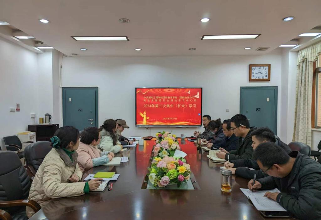 (国际交流中心)举行党总支理论学习中心组2024年第二次集中(扩大)学习,党总支书记罗胜杰主持,全体教工党员参加。