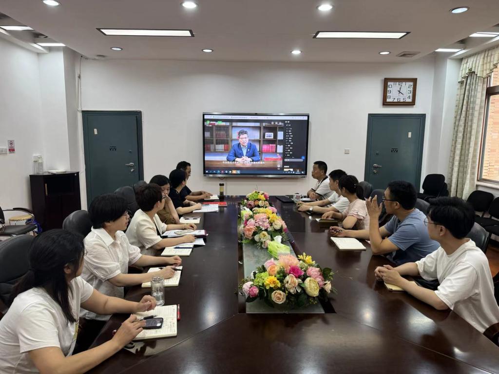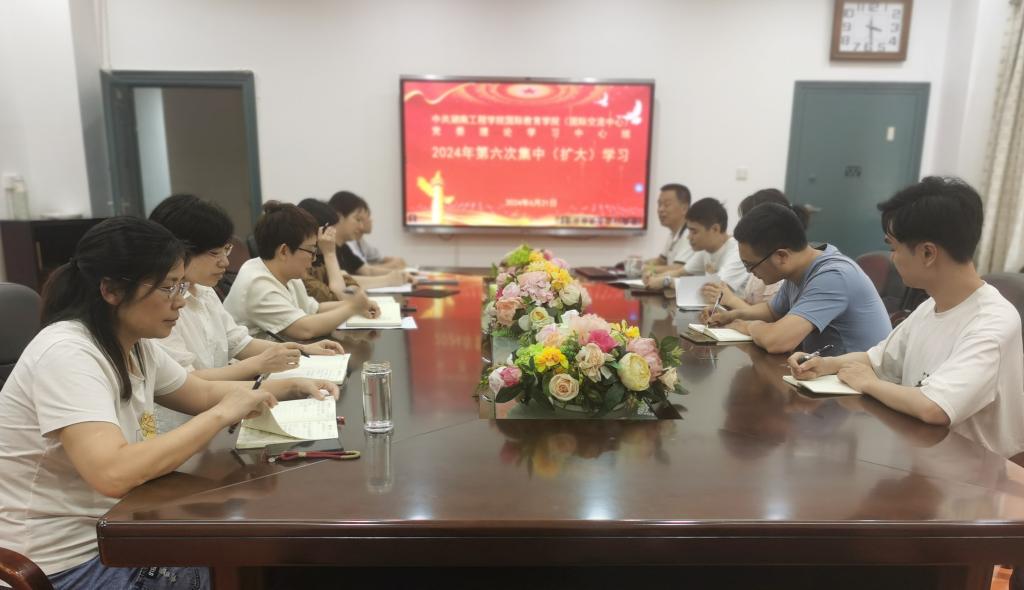 在E105会议室举行党委理论学习中心组2024年第六次集中(扩大)学习,党委书记罗胜杰主持,全体教职工党员参加。