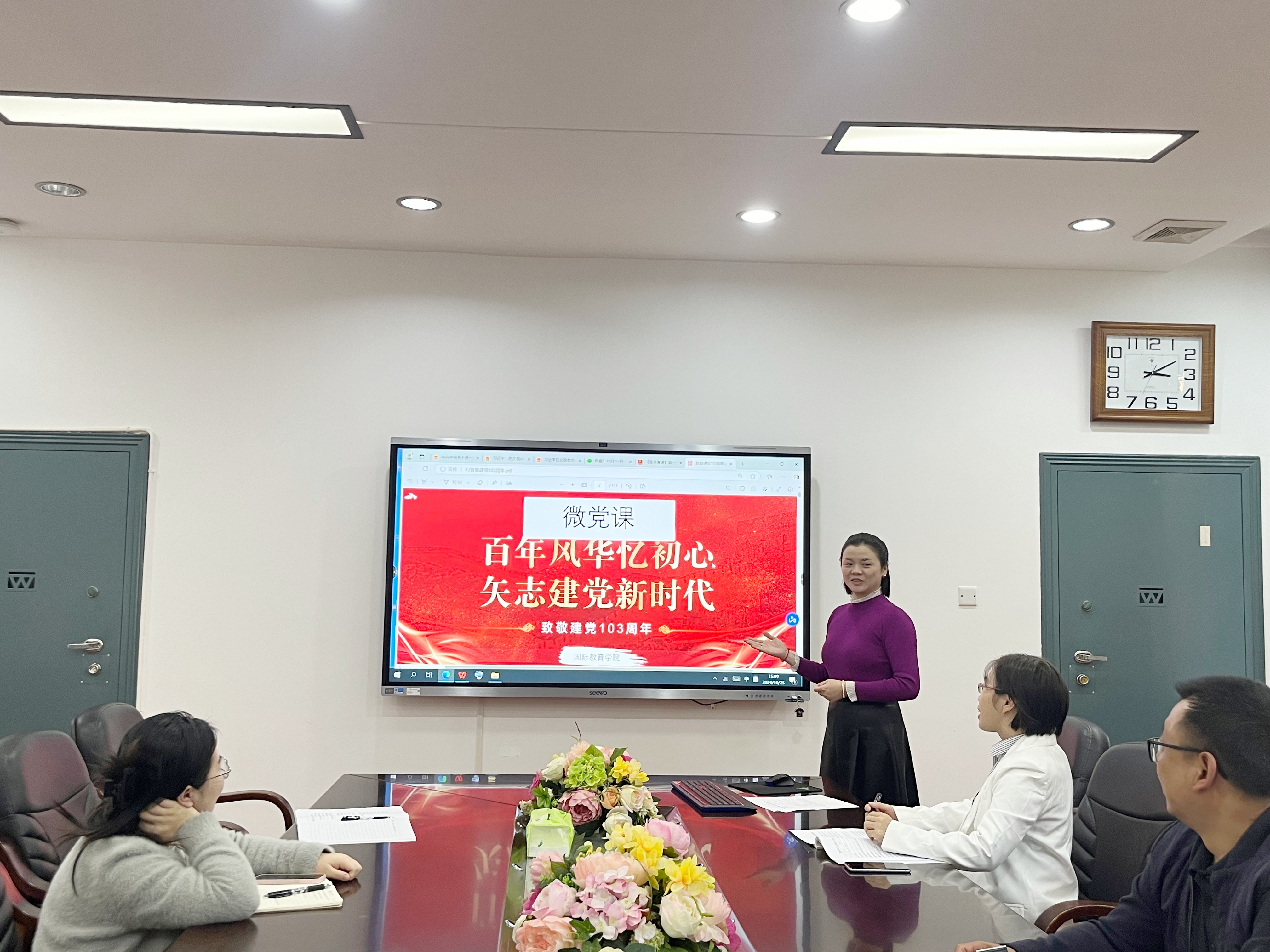 为认真学习贯彻党的二十届三中全会精神,引导激励广大党员始终不忘初心、牢记使命,进一步提升基层党组织战斗堡垒作用,nt动漫 于10月25日下午,在E105会议室开展党委理论学习中心组第九次集中学习暨教工党支部十月主题党日活动。