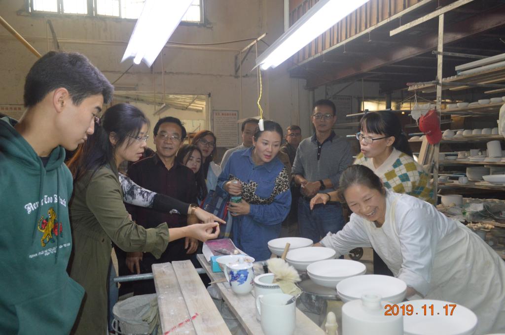 参观醴陵窑,领略中国瓷器艺术和文化,感受红色文化深深的镶嵌在醴陵瓷器中。在参观国光陶瓷厂的制作工厂过程中,参观了解了瓷器的制作过程,看到了工匠画师们的精湛技艺,无不感叹中国瓷器的精美。大家感慨,这种匠心品质与学院“专注坚持、精益求精”的精神一脉相承,在今后的教学育人中一定要用心坚守,认真践行。