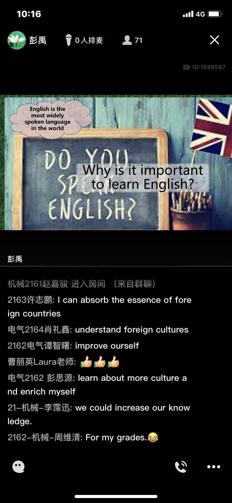 交流会上,外籍教师Tony围绕英语学习、海外留学及跨文化交流等几个方面为新生作了讲解和介绍。Tony老师强调了英语学习的重要性,分享了学习英语的方法和技巧,并且特别强调了跨文化交流和学习中必须具备的自信、耐心、礼貌等重要品质。大一萌新们纷纷加入讨论,表达了自己对英语学习的兴趣和对跨文化交流的向往,与外教热烈互动,表达“I hope I can speak English fluently”、“I will make some foreign friends”、“I hope to understand foreign culture”的美好愿景。虽然有些同学在初次与外教的交流中还有些拘谨,但大家都纷纷表示出对新学期新生活的憧憬和期待。
