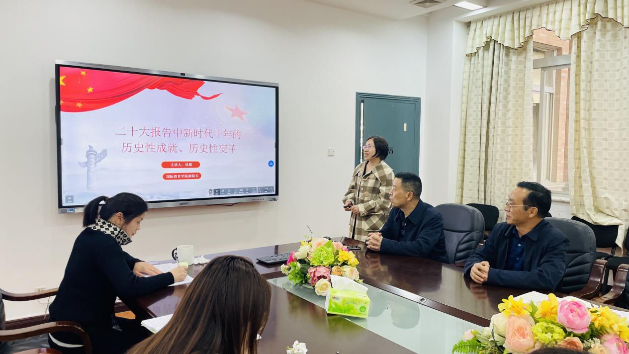 最后,教工党支部书记林愿以题为《二十大报告中新时代十年的历史性成就、历史性变革》的党课,她带领全体党员重温了新时代十年的伟大成就和伟大变革。她说到:十年来,以习近平同志为核心的党中央团结带领全党全军全国各族人民撸起袖子加油干,风雨无阻向前行,义无反顾进行具有许多新的历史特点的伟大斗争,采取一系列战略性举措,推进一系列变革性实践,实现一系列突破性进展,取得一系列标志性成果,经受住了来自政治、经济、意识形态、自然界等方面的风险挑战考验,党和国家事业取得历史性成就,发生历史性变革,推动我国迈上全面建设社会主义现代化国家新征程。成就来之不易,弥足珍贵,千秋伟业,万里河山。一个风华正茂的大党,一个日新月异的国家,亿万信心满怀的人民,未来不可限量,前景一片光明!