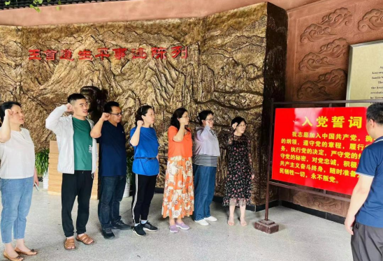 5月27日上午,教工党支部全体党员前往红色革命教育基地——浏阳王首道故居,开展“红色基地忆党史 砥砺初心强党性”主题党日活动。在王首道同志生平事迹陈列馆,罗胜杰结合展出的珍贵图片和历史实物,为全体党员生动讲述了革命前辈王首道同志的革命生涯及其为党和人民无私奉献的一生。在陈列馆前,他带领大家重温了入党誓词,号召大家在今后的学习和工作中,汲取榜样力量,加强理论学习,锤炼党性修养,立足岗位,奋发有为,为教育事业奉献自己的光和热。