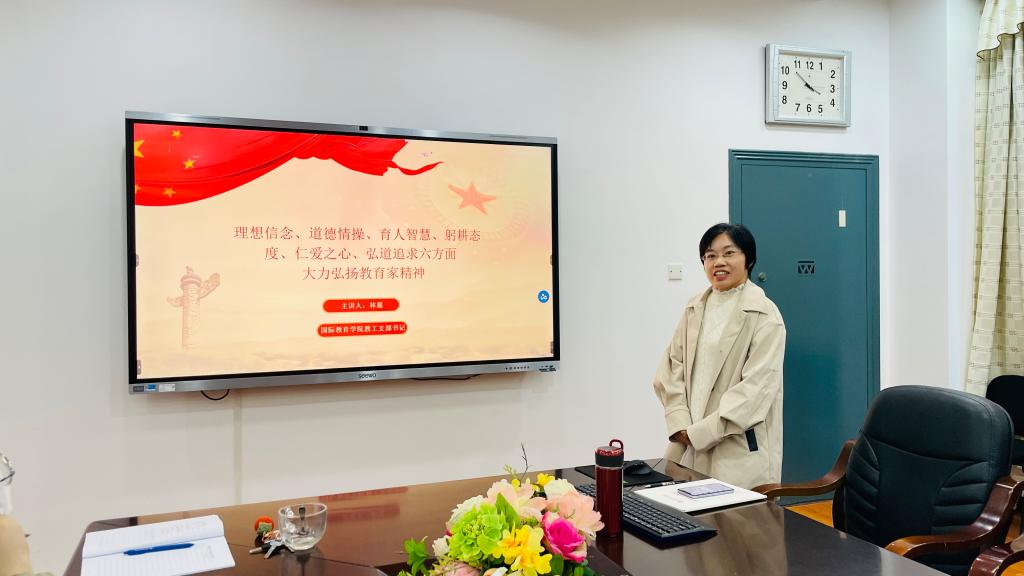 林愿为大家带来题为《弘扬教育家精神 争做新时代大先生》的微党课,她以如何理解教育家精神核心要义为切入点,对基本内涵进行了系统讲述,概括了教育家精神的主要表现,以及如何在新时代践行教育家精神、争做大先生。她指出,教育承担着“为党育人、为国育才”的神圣使命,教师要有大格局、大情怀、大学问、大修养,要注重从理想信念、道德情操、育人智慧、躬耕态度、仁爱之心、弘道追求六个方面全面提升自己。