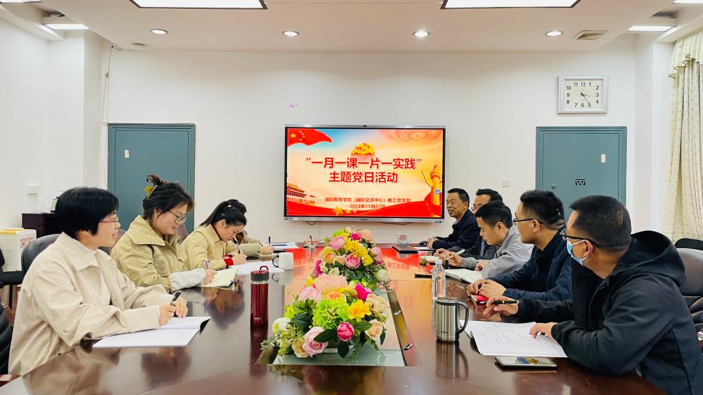 (国际交流中心)党总支教工党支部在E105会议室举行“一月一课一片一实践”主题党日活动。活动由支部书记林愿主持,支部全体党员参加。