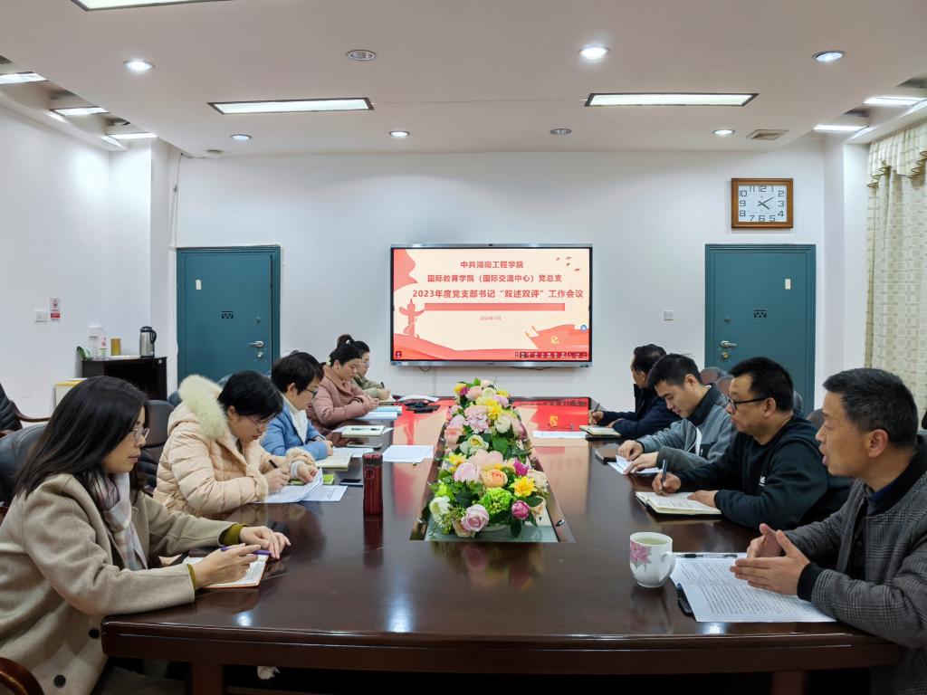 (国际交流中心)党总支在E105会议室组织召开了教工支部民主评议党员和党支部书记“双述双评”工作会议,党总支成员、支部书记和教工党员参加。
