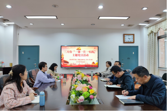 (国际交流中心)教工党支部在E105会议室举行“一月一课一片一实践”主题党日活动。活动由支部书记林愿主持,支部全体党员参加。