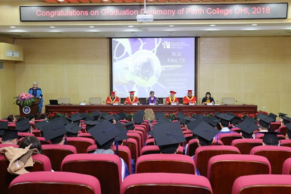 与英国高地与群岛大学(UHI)合作举办的本科教育项目2018届英方毕业庆典在这里举行。