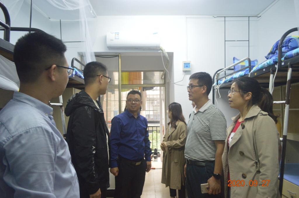 院长邓奕率辅导员和新生班主任来到2020级新生寝室进行走访、慰问。