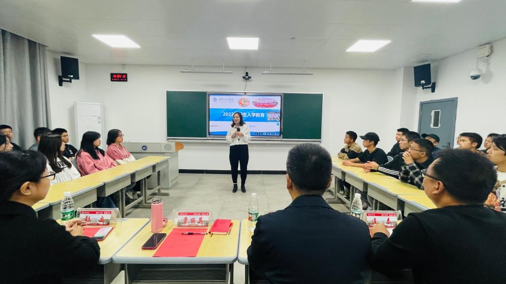 在教学楼C座举行2022级新生入学教育大会。会议采用线上线下相结合的方式进行,党总支书记罗胜杰主持,全体院领导、新生班主任、辅导员参加。