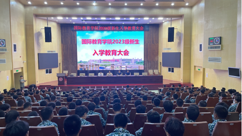 在一报告厅举行2023级新生入学教育大会。院领导、辅导员、新生班主任、2023级全体新生及优秀毕业生代表参加,会议由党总支书记罗胜杰主持。