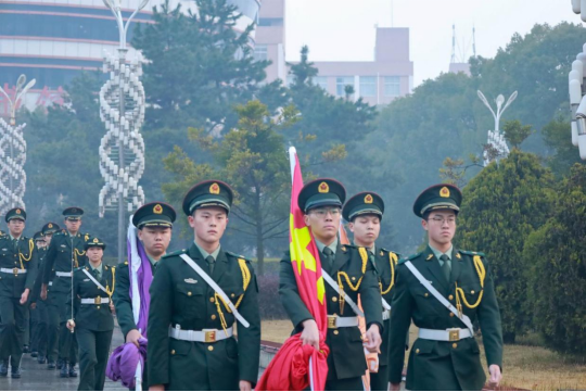 在主校区知行广场举行以“青春爱国勇担当 奋斗筑梦新时代”为主题的升旗仪式。学院党总支书记罗胜杰、副书记连泰、全体辅导员及2023级全体学生参加。