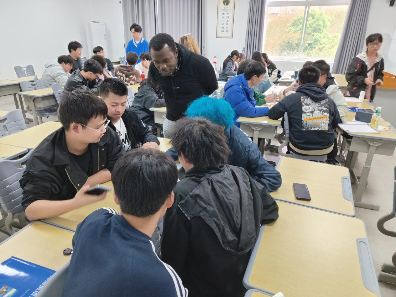 外教Iyke则通过模拟真实场景对话,引导同学们大胆开口说英语。他为同学们创设了包括日常沟通、校园生活、个人成长等多个对话情景,鼓励学生开展头脑风暴,将口语对话融入到生活之中。同时,他针对同学们在发音、语调、词汇运用等方面的问题,进行了细致的教学。