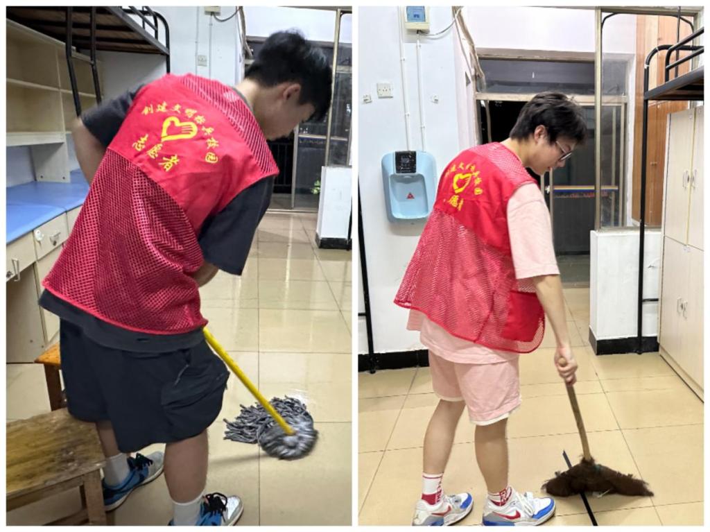 活动中,志愿者们分工明确,协作默契。分组领完工具后大家认真擦拭桌椅、柜子、窗户等,将物品摆放整齐,并开窗通风,保持空气清新,对墙角缝隙、衣柜顶端等卫生死角进行细致清理,力求彻底清除尘埃,消除细菌滋生隐患。最后,同学们对宿舍开关、空调、风扇、门窗等硬件设施作了一一检查。