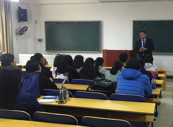 会计和商务英语专业的部分学生上了一堂精彩的示范课,他向学生介绍了英国会计课程与其他商科课程的区别,并重点讲解了英国大学的课程学习特色。