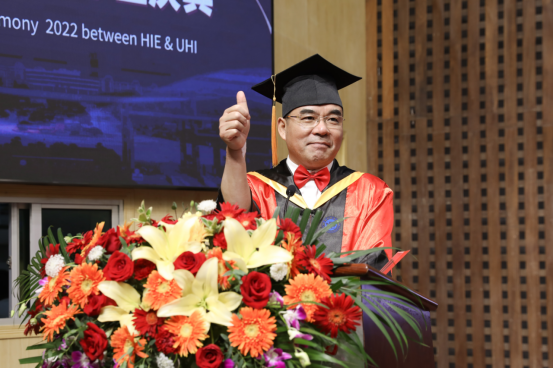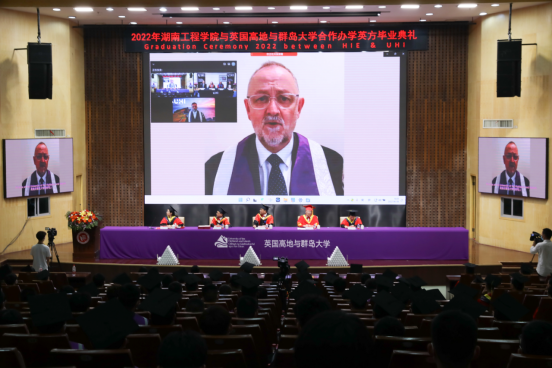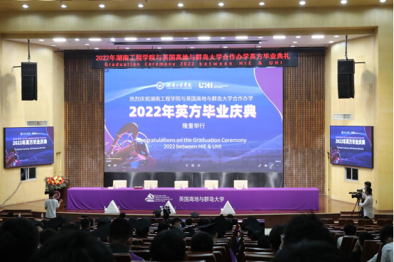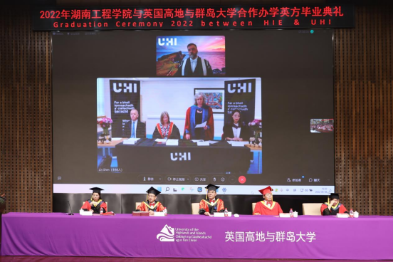 与英国高地与群岛大学(UHI)合作举办的本科教育项目2022年英方毕业庆典在一报告厅举行。
