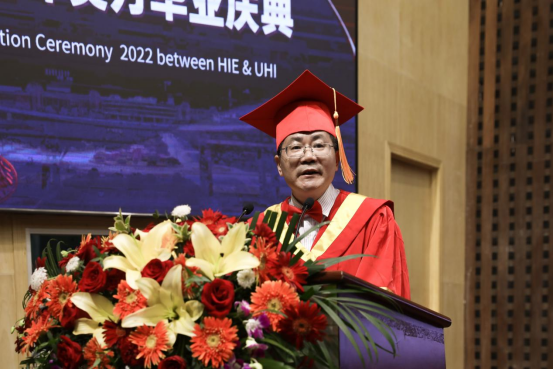 陈岳堂在答谢词中,肯定了本届毕业生在学校国际合作办学历史上创造的三个“之最”:获得英方学位人数最多、获得证书比例最高、培养质量最优。“了不起!给你们点赞!”同时他也对同学们提出了殷切期望,希望毕业生们在人生的新起点上,能够突破人生高度、拓展人生宽度、实现人生跨度,绘就壮美人生图画。