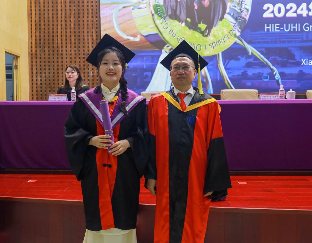 Veronica Lynch博士致辞。她热烈欢迎所有毕业生加入UHI校友大家庭,并欣喜地分享了UHI近年来荣获的新成就。她把两校的合作办学机制、家庭、社会比喻成一个紧密相连的生态系统,这个系统给予了青年学子精心的呵护和全力的支持,让他们从小树苗茁壮成长为参天大树。她希望毕业生们珍惜大学的土壤、家庭的华盖、产业的布局,向下扎根,向上生长,成为卓越的知识管家、思想传播者及工程师。