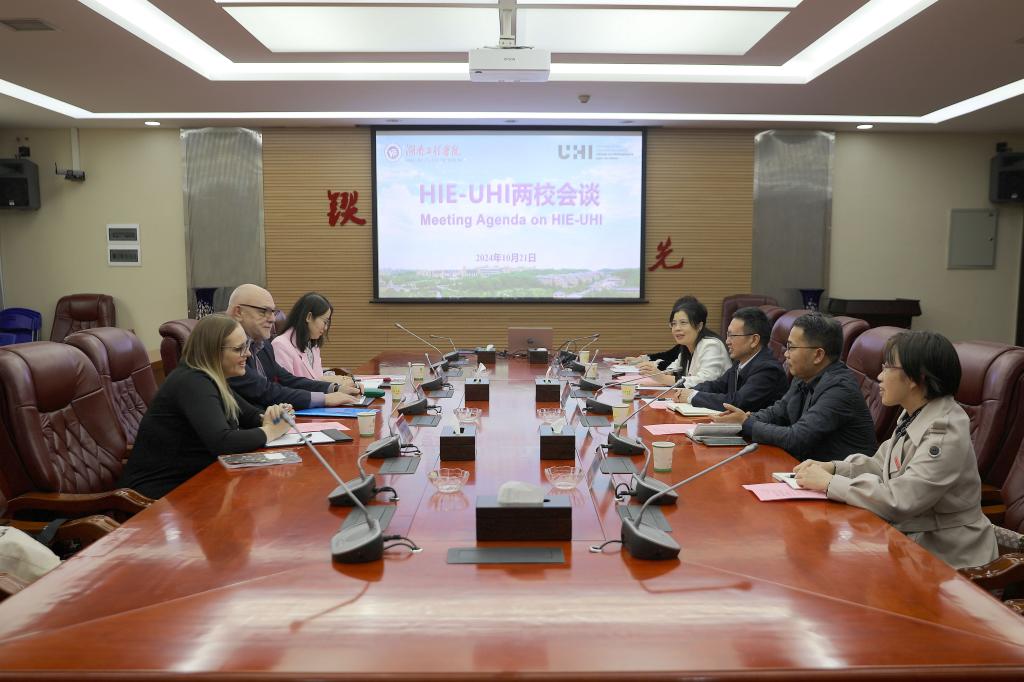 罗毅平向远道而来的Lorenz Cairns校长一行表示热烈欢迎。他回顾了中英两校从2012年开始合作,至今十三年时间里,在人才培养、教师交流、学术研究等各方面取得的丰硕成果,共同谱写了成功合作的华丽篇章。他感谢UHI的领导和老师们一直以来对合作项目的大力支持和辛勤付出,希望双方继续秉持“互利共赢,共同发展”的原则,以高质量建设为引领,深度融合学科优势、办学特色和优质师资,积极探索学生培养和科研合作等方面的新思路新路径,共同打造中英两国高校国际合作典范。