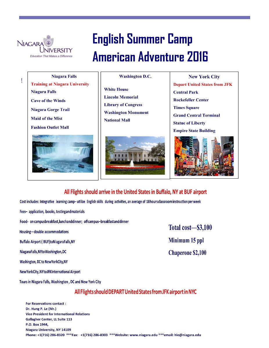 现转发尼亚加拉大学2016英语夏令营资料,欢迎垂询、报名!