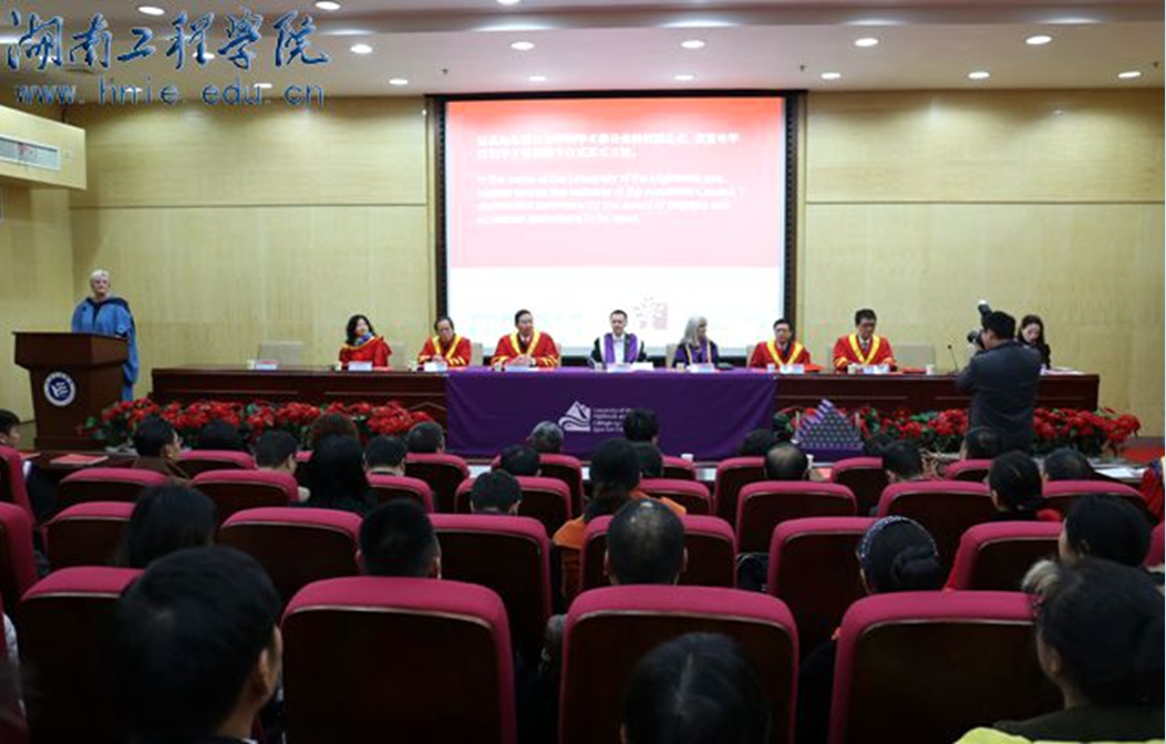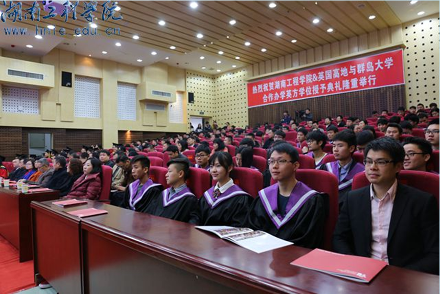 与英国高地与群岛大学合作举办电气工程及其自动化和机械设计及其自动化本科教育项目2012级的32名同学在此接受了英方学位授予。