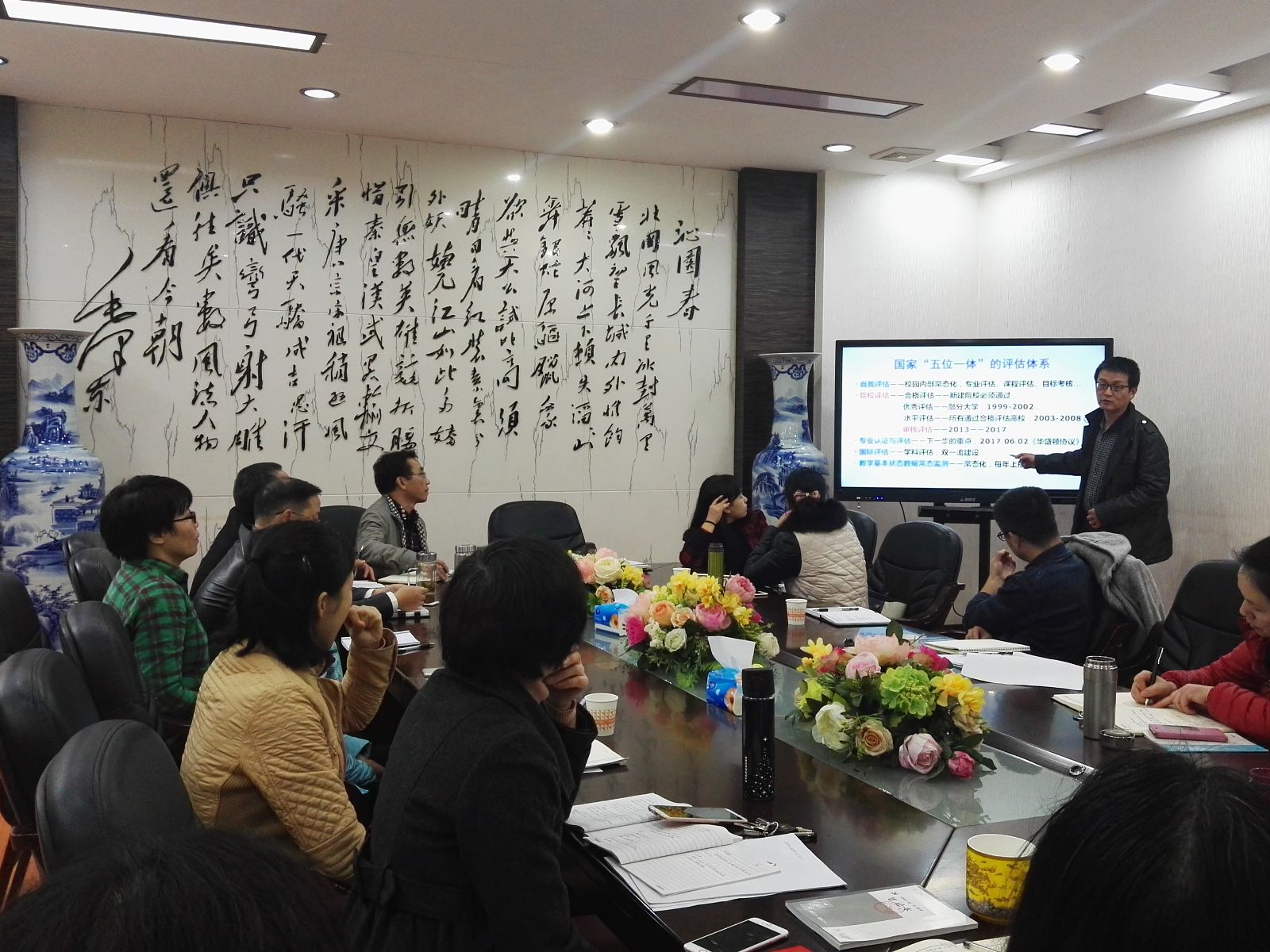 在E105会议室召开审核评估知识专题宣讲会。会议由院长邓奕主持,全体教职工参加会议。
