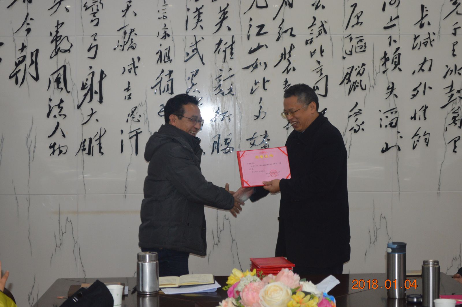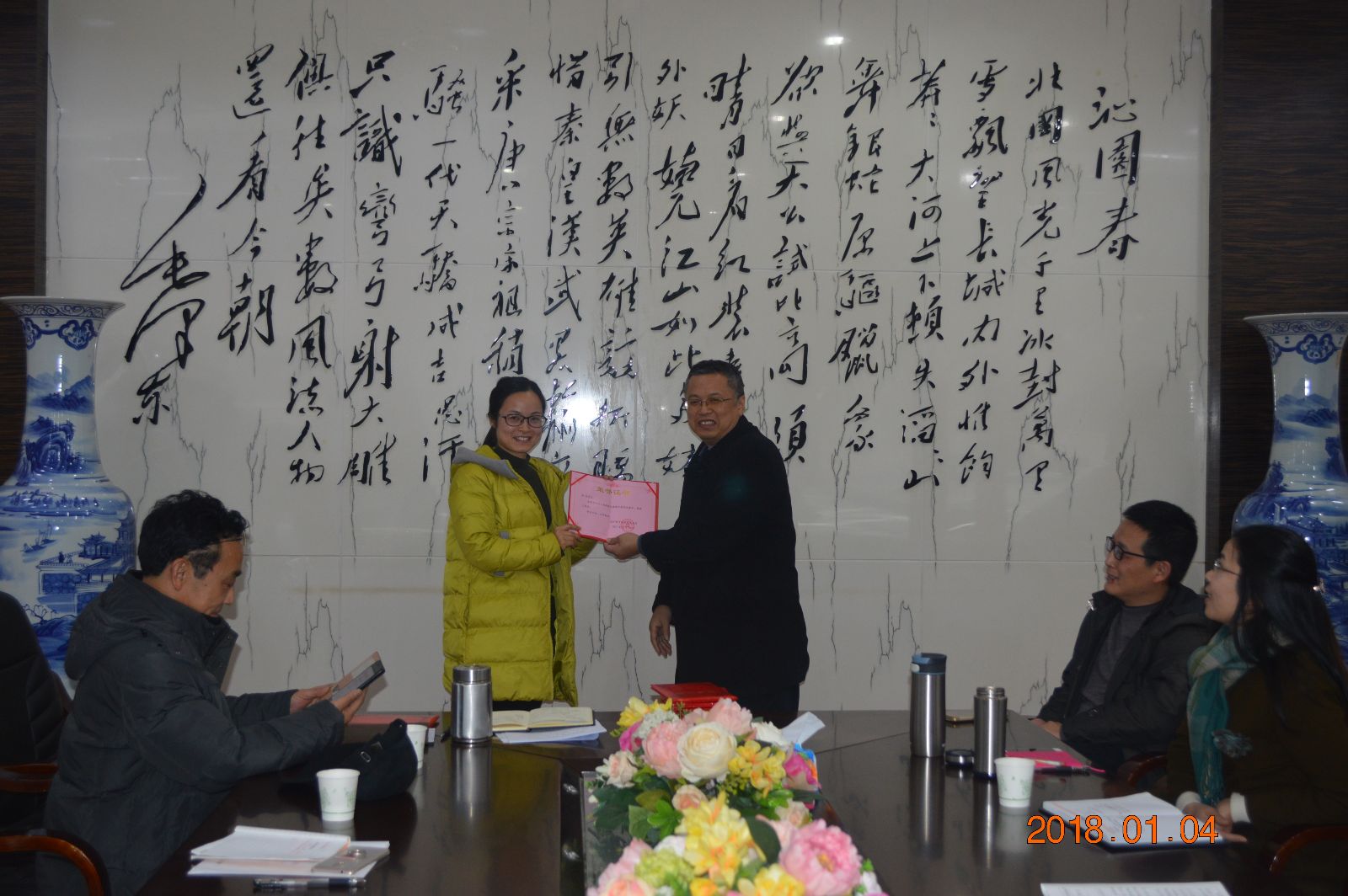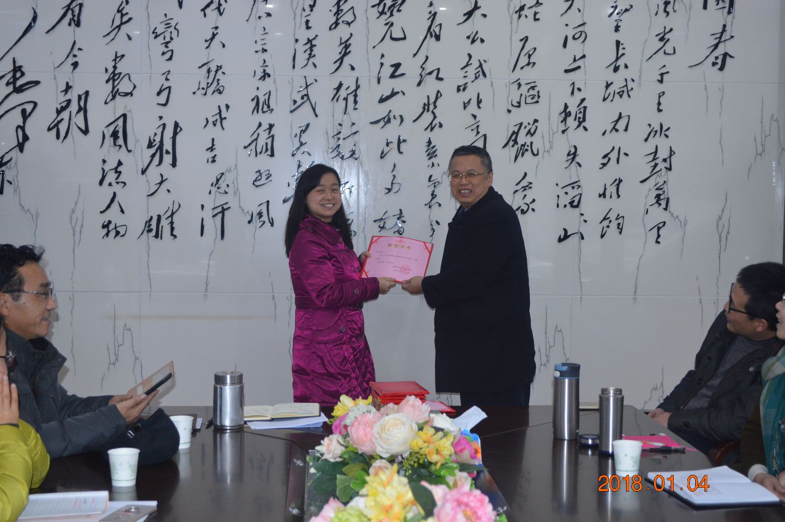 2018年元月4日,学院为获奖教师举行了颁奖仪式,党总支书记苏哲民、教工党支部书记夏赞成和院长 邓奕分别为获奖老师一一颁奖。