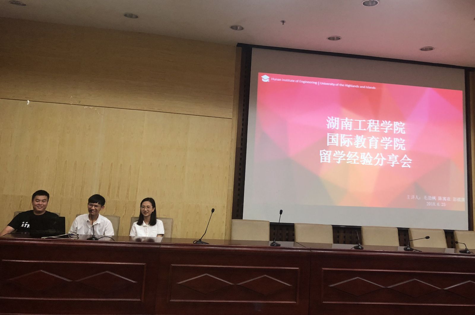 为了帮助学弟学妹们了解国外的学习和生活情况,尽早确定学业规划,我院于6月25日下午16:30在图书馆第二报告厅举行国外学习经验分享会。分享会的材料由我院中英合作办学2018届毛劭枫、陈寓农、杨紫荆、彭祺琪、曾伟杰等五位留学毕业生准备。该五位同学于第四学年赴英国高地与群岛大学(UHI)学习了一年,并获得了UHI大学2.1及以上工程荣誉学士学位,目前均已被世界排名100以内的名校录取为硕士研究生。