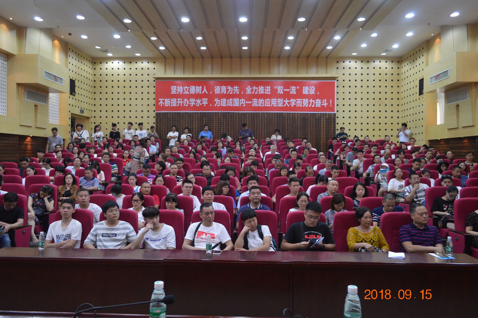 在图书馆二报告厅召开了2018级新生家长见面会。本次会议由学院党总支书记苏哲民主持。学院领导、教研室主任、全体辅导员、新生班主任和朋辈导师参加了见面会,与近两百位新生家长进行了热烈交流。