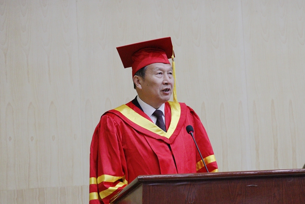 校长刘国繁教授致辞祝贺同学们通过自己艰苦卓绝的努力获得英方学位,同时对负责教学的老师们表示衷心的感谢,对项目取得的成就予以充分肯定,并对同学们寄予诚挚的祝福和殷切的期望:一是希望同学们能永远对理想葆有激情与追求;二是希望同学们能始终怀着感恩之心;三是希望同学们始终对国家和民族抱有责任与担当。
