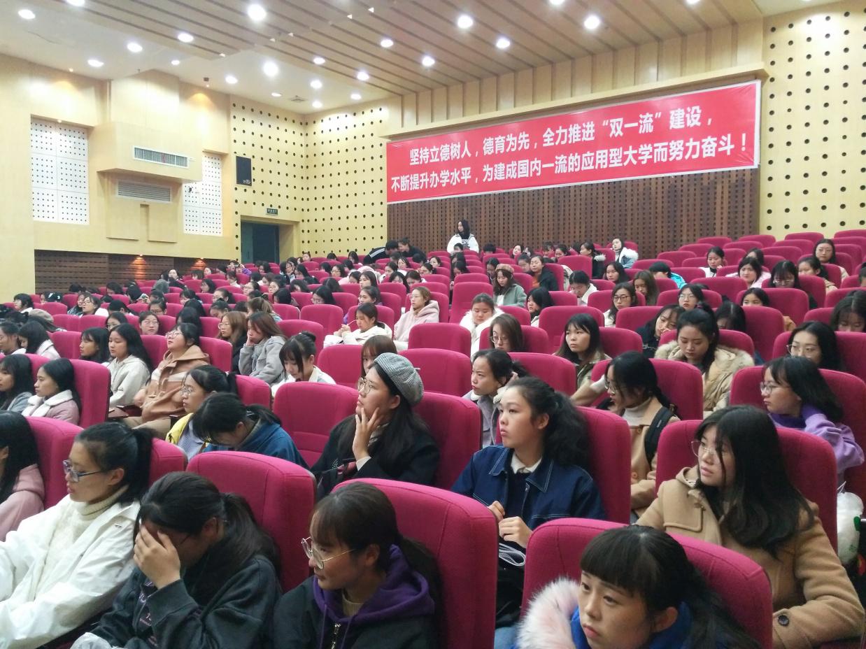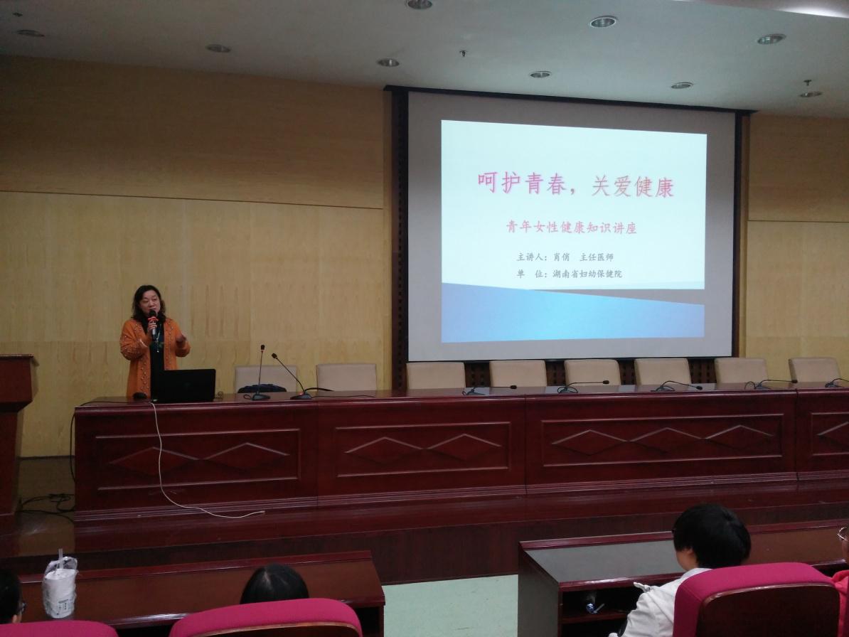 于2018年11月21日晚在图书馆第二报告厅举办了“呵护青春,关爱健康”女性健康知识专题讲座。此次讲座特邀到了湖南省妇幼保健院专家、产房主任肖俏主讲,全院200多名女性师生参加。