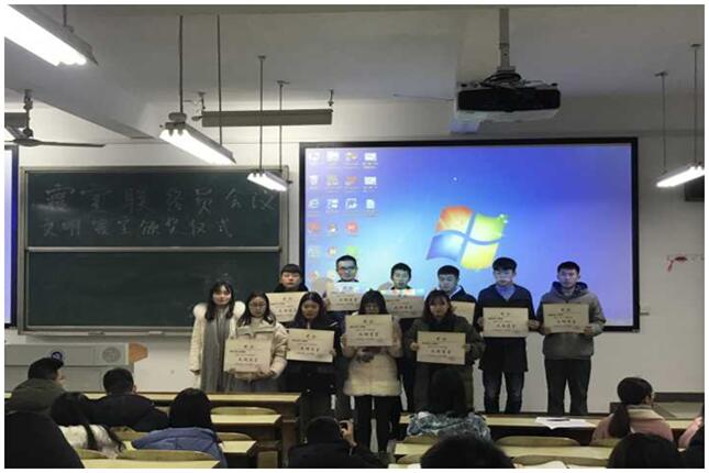 于12月13日晚上召开文明寝室表彰大会。大会由何菁老师主持,学办主任肖彬老师和全体辅导员出席大会。参加大会的有全院各寝室的寝室长,团学会生活纪检部成员。会议的主要内容包括:学校宿舍管理方面新的改革、我院对于学校改革提出的宿舍管理办法、迄今我院宿舍管理方面取得的成果和存在的问题、十一月份文明寝室的授予仪式。