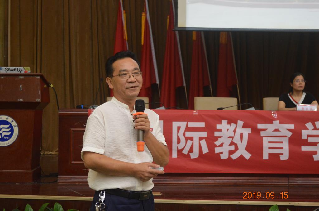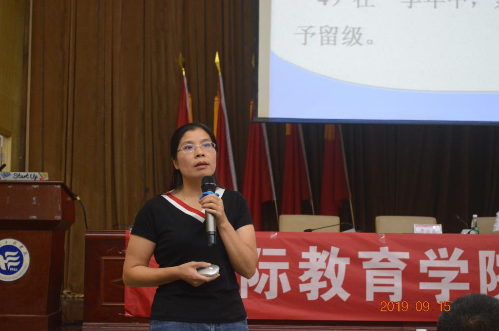 党总支书记苏哲民围绕学生工作,结合国教学院特色,向家长强调了大学期间需要家长配合及注意事项,着重讲解学生工作中的学风建设、财产安全、心理健康等几个方面,希望新生们能尽快适应从高中到大学的转变,学会自主管理,调整学习方式,全面发展。书记希望家长配合学校共同教育孩子,帮助孩子确立良好的作息时间,教育他们理性消费和注意人身财产安全,同时把握好与孩子沟通的方式方法,遇到问题要及时与辅导员进行沟通。