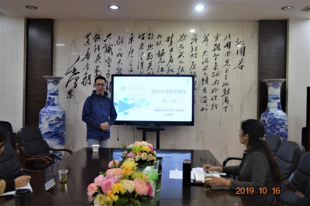 在E105会议室举办来华留学生汉语课程教学讲座。湖南科技大学人文学院王奕祯博士应邀主讲。nt动漫