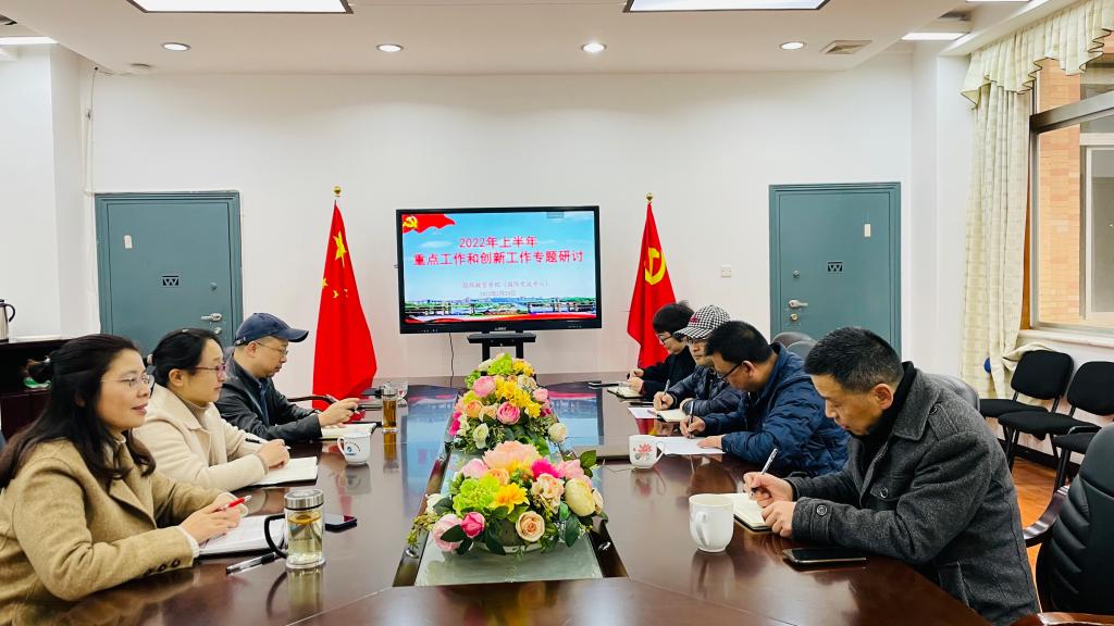 (国际交流中心)2022年上半年重点工作和创新工作研讨会在E105会议室召开,全体院领导和科长参加会议。