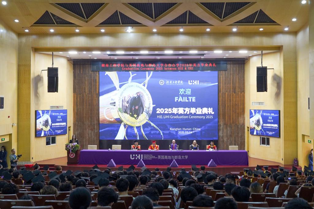 与英国高地与群岛大学(UHI)共同为227名电气工程及其自动化、机械设计制造及其自动化专业毕业生举行英方学位授予典礼。这群立足湖湘大地、兼具全球视野的青年学子,以优异成绩为中英合作办学项目十四载育人征程再添华章。