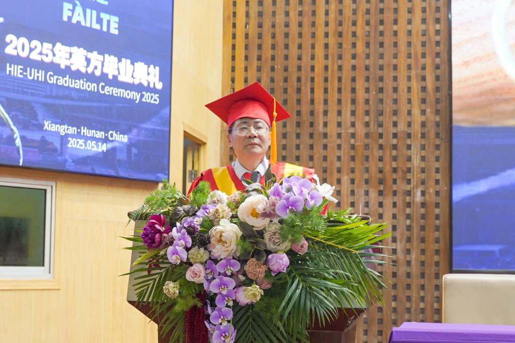 ,向远道而来的英方伙伴、无私奉献的教育工作者、倾力支持的家长们,以及2025届全体毕业生,致以最热烈的祝贺与最衷心的感谢!”党委委员、副校长罗毅平致辞。他勉励毕业生们以湖湘文化“敢为人先”为舟,以UHI“创新基因”为帆,在民族复兴的征程中镌刻属于中英合作学子的璀璨荣光!
