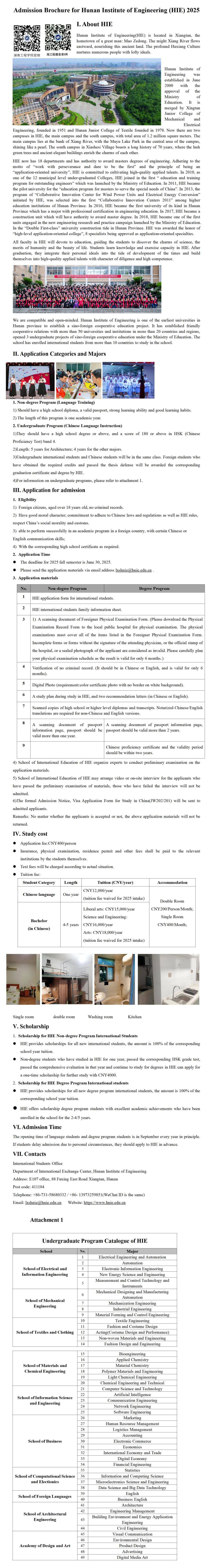 下一篇: Admission Brochure for Hunan Institute of Engineering (HIE) 2022