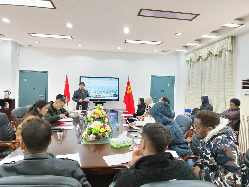 在E105会议室召开了留学生假前教育专题会议。