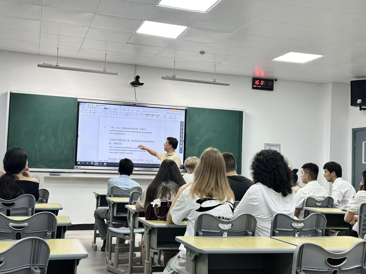 组织来自吉尔吉斯斯坦、乌兹别克斯坦、哈萨克斯坦、俄罗斯、蒙古、塔吉克斯坦六个不同国家的语言留学生开展入学指导活动。留学生办公室主任郑怀湘及各学科教师、中文助教参与此次活动。