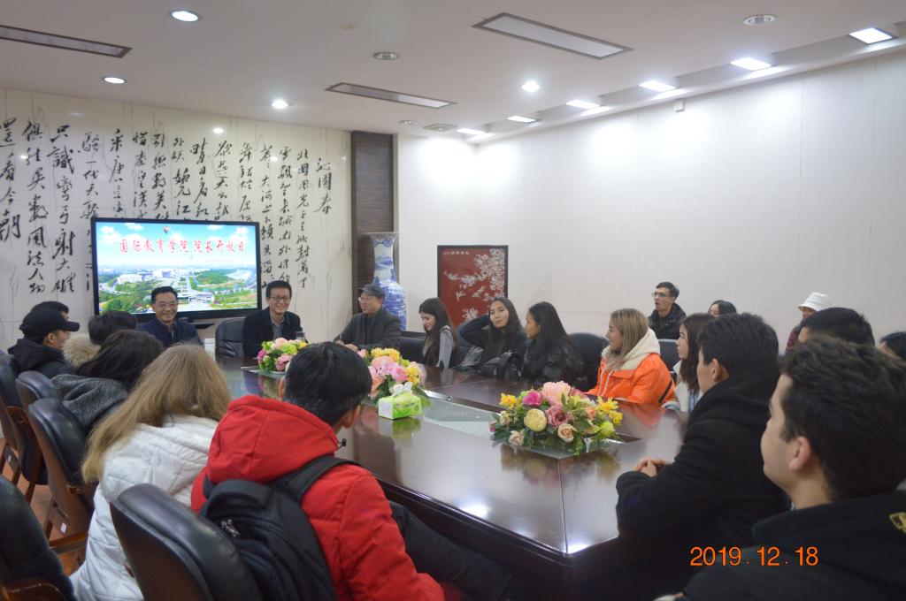 为贯彻落实“不忘初心、牢记使命”主题教育精神,深入了解国际学生的学习生活现状,帮助国际学生解决学习和生活中的困难,12月18日下午,我院在学院会议室为国际学生开展了院长开放日活动。院长邓奕、党总支书记苏哲民、国际学生办公室主任郑怀湘,与25名国际学生进行了亲切座谈。