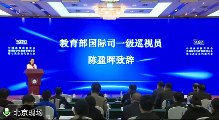 陈盈晖在致辞中,对分会及刘京辉理事长过去几年的工作给予了高度评价,并对分会今后的工作提出明确要求:第一,提高政治站位,坚持把讲政治、顾大局作为分会建设的首要要求,勇担当、善作为,全力配合支持教育部国际司、国家留学基金委以及地方和高校做好来华留学工作;第二,积极发挥优势,做好政府的参谋助手,不断推动教育工作进位,坚持问题导向,聚焦前瞻性问题,做好做强来华留学教育。第三,加强自身建设,促进信息教育数字化平台建设,不断优化服务质量,切实发挥服务国家、社会、群众、行业的重要作用。