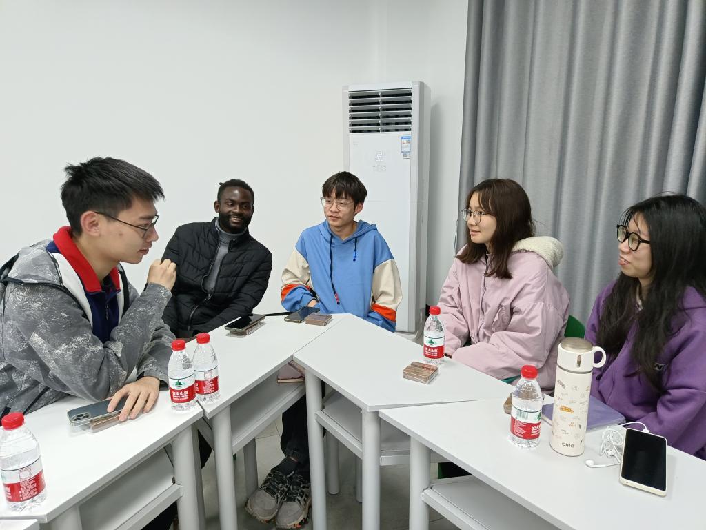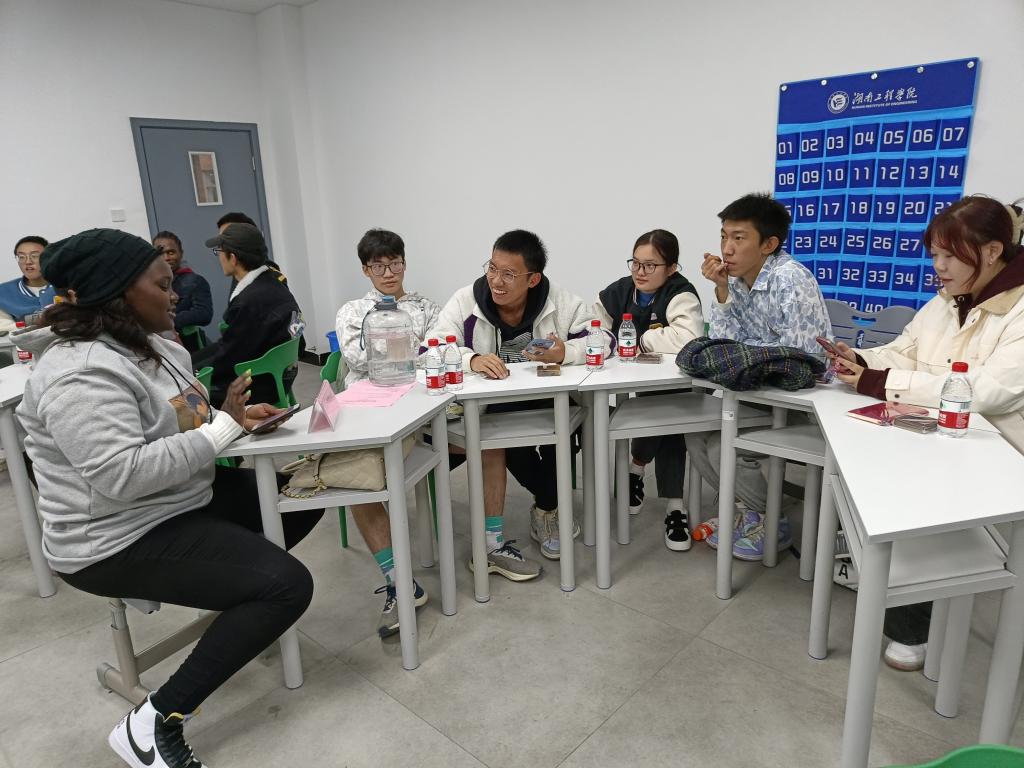 座谈交流环节,郑怀湘组织同学们围绕“中外文化冲突与融合”、“我眼中的留学生”、“我的留学生活”等话题进行小组交流。同学们就日常学习、课程设置、宿舍生活、兴趣爱好、节日文化等方面畅所欲言,融通中外,情暖深冬。“我非常感谢班长和学委经常提醒我一些容易错过的信息,比如调课、实验等,他们的帮助为我提供了方便。”名为“祝福”的留学生说道。“王子同学不仅篮球打得好,还很乐于助人,班上有同学脚受伤骨折了,休养期间都是他背着上下楼。”“祝福同学是妥妥的学霸,各科作业都认真完成,尤其手绘的机械制图精准度极高!”中国同学们也为留学生的乐于助人、勤奋上进精神深受感动。