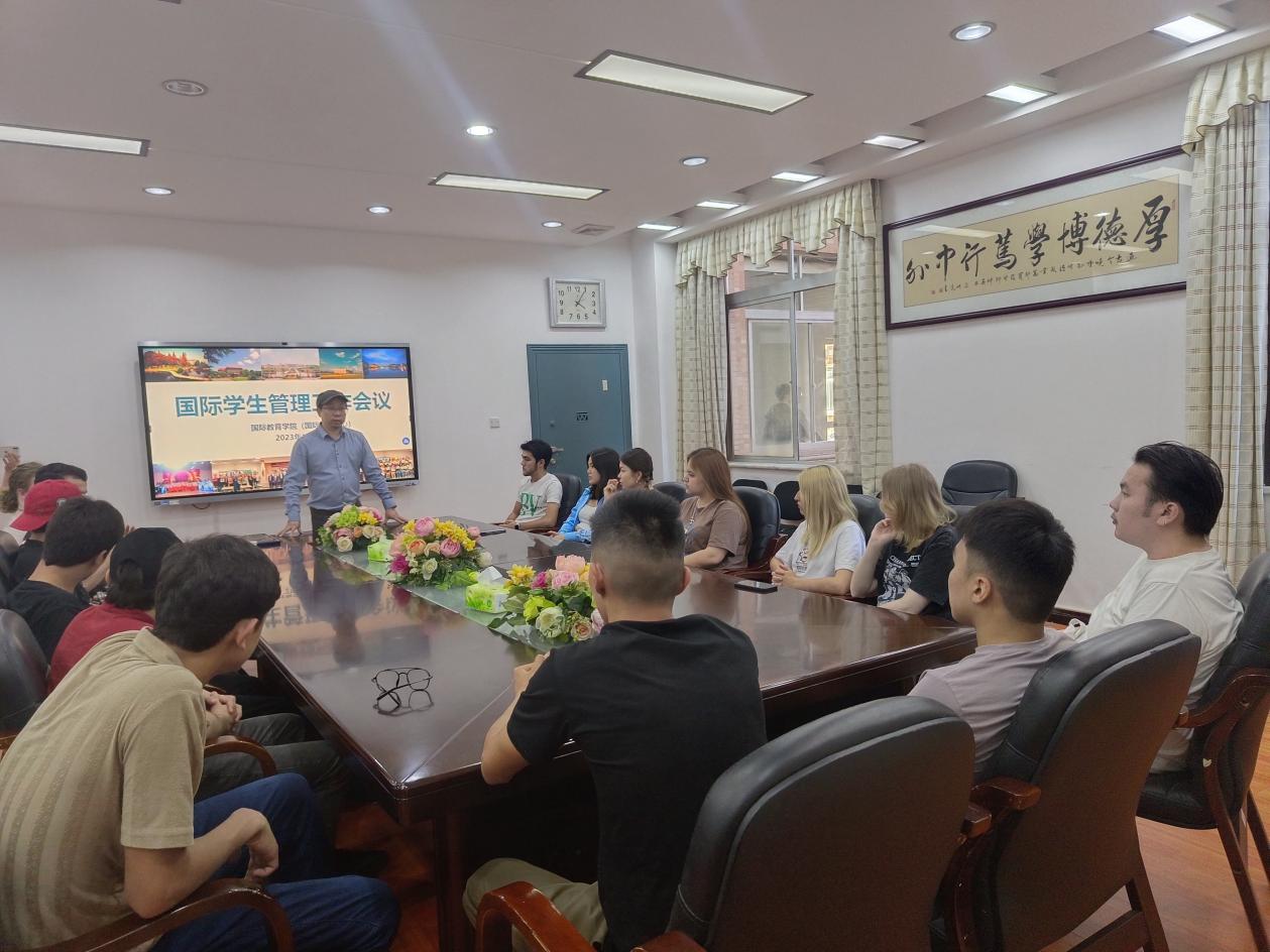 郑怀湘从学习、安全教育、宿舍管理、校纪校规、行政法规等方面进行了介绍和督促。他对国际学生提出了几点要求:一是要求国际学生遵纪守法,全身心投入学习,争取早日通过语言关;二是珍惜来华学习机会,提前做好学业发展规划,打好知识基础;三是鼓励学生们多与中国师生交流沟通,积极参加文化活动。他强调,同学们要尽快积极融入学校学习和生活,形成“学习有计划有目标,生活健康有规律,学业有规划有方向”的良好态势。