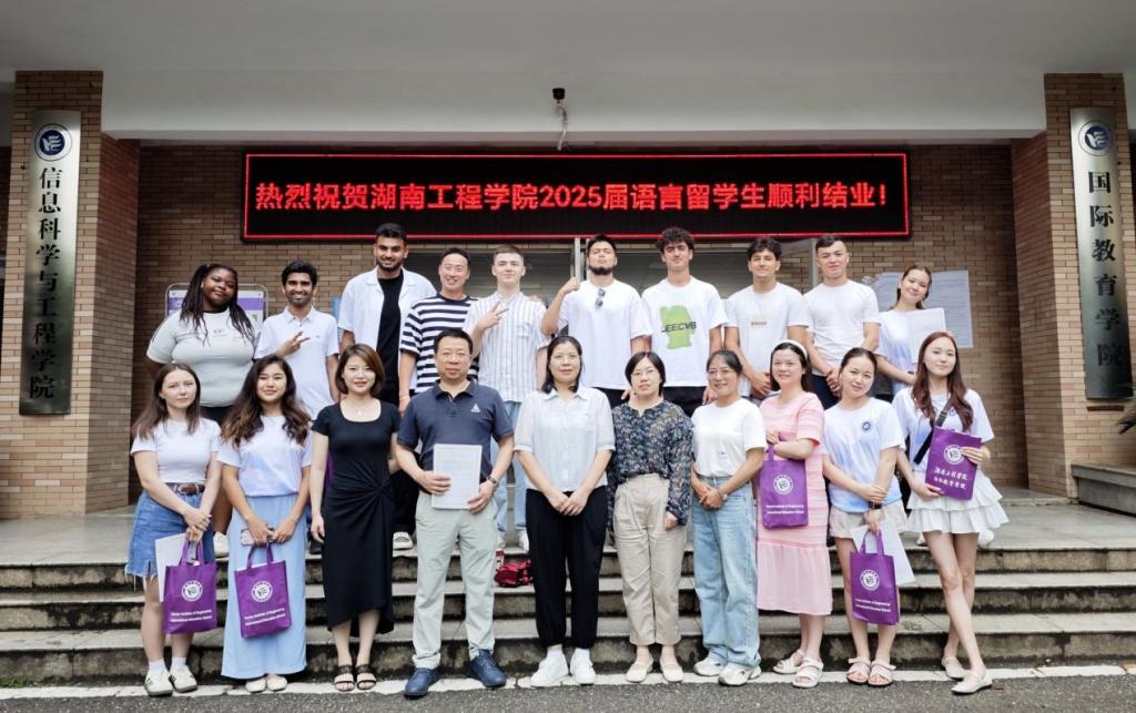 典礼尾声,曹丽英院长为留学生逐一颁发结业证书,并以《“湘”聚世界,融通未来》为题发表总结讲话。她肯定了留学生们“从‘你好’到‘知华’”的蜕变:“你们用一年时间,让‘汉语’从课本上的符号变成了生活里的温度,让‘中国’从地图上的坐标变成了心中的认同。”随后,她提出三点殷切期望:一是树立终身学习理念,以数字时代的学习力应对未来挑战;二是秉持“各美其美”的文化自觉,在文明互鉴中培养战略思维;三是践行“知行合一”的担当践行文化使者的青春使命,用真诚与智慧,让世界看见更立体的中国,也让中国听见更丰富的世界。讲话最后,曹院长以温暖的寄语收尾:“愿你们带着在湘潭收获的知识、友谊,继续‘读懂中国’,成为会讲中国故事的文化使者!”