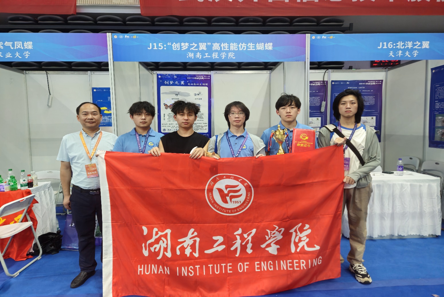 机械设计制造及其自动化专业学生张玮航、石俊豪、朱谦、曹世杰、唐永衡(指导老师:王高升、连泰)组成的创新团队创作的作品《“创梦之翼”高性能仿生蝴蝶》喜获全国一等奖,这是学院首次在该项赛事中获此殊荣。