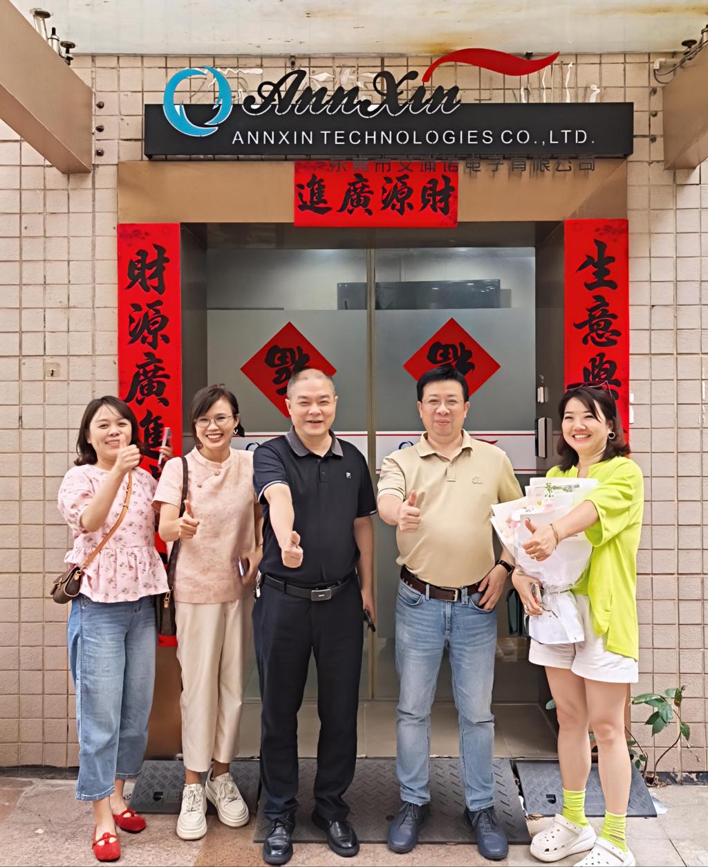 东莞市艾浦诺电子有限公司(简称ANNXIN)成立于2015年,公司创始人谭金莲向调研团队介绍了企业的发展历程:“作为一家集光电产品、通讯设备及电子数码产品研发生产于一体的制造业企业,希望吸引更多学弟学妹们加入。期待未来能在实习就业、联合研发等方面开展更紧密合作。”