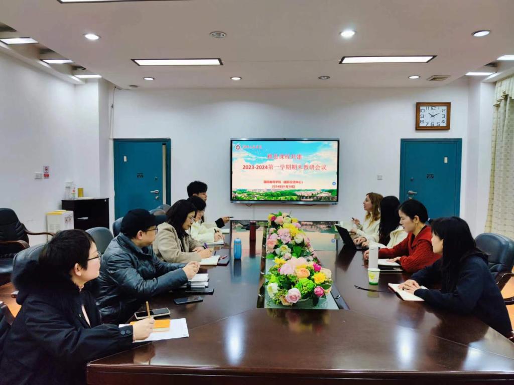 在E105会议室召开雅思课程共建期末教研会议。会议由副院长林愿主持,雅思课程各科目专业教师、外籍教师Linda、软件工程专业班主任以及《综合英语》任课教师参加会议。